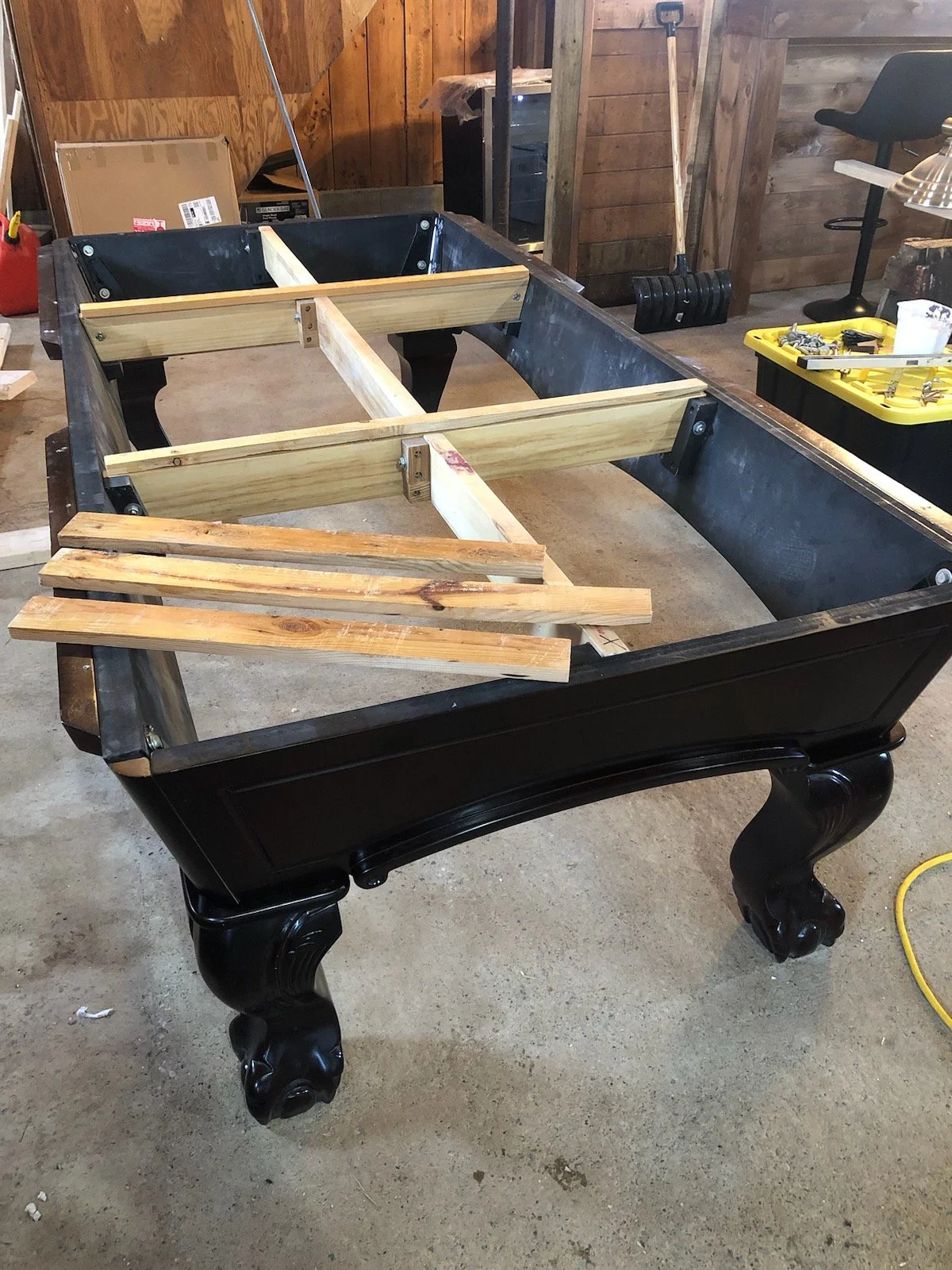 Montage professionnel du cadre de la table de billard assurant une base solide et parfaitement stable. Chaque composante est assemblée avec précision afin de garantir l’alignement structural, la rigidité du support et la répartition uniforme du poids des ardoises. Un cadre correctement monté constitue l’élément essentiel pour une mise à niveau durable et une performance de jeu optimale.